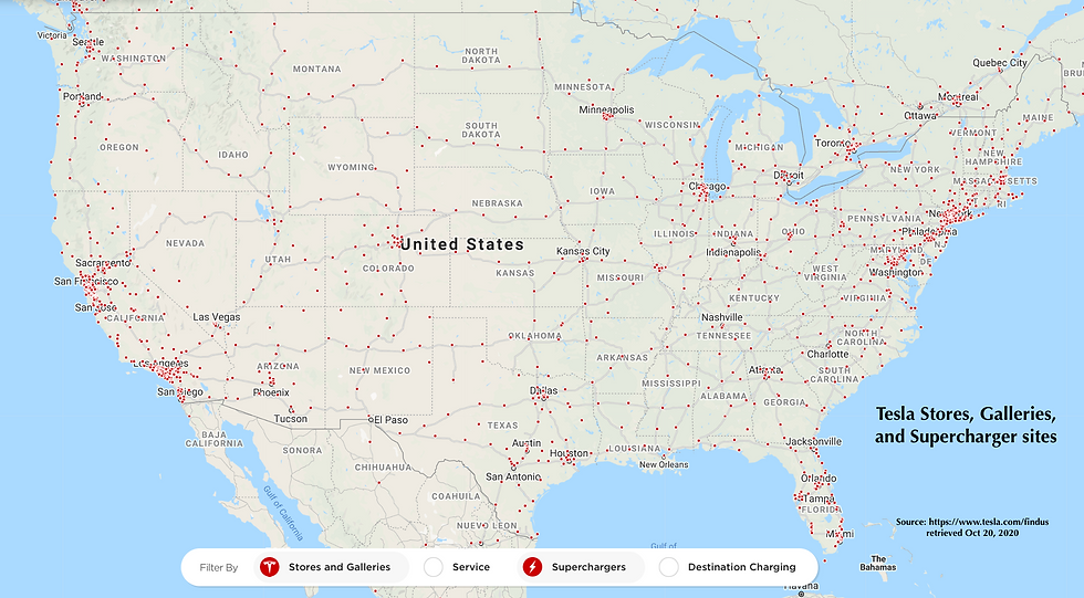 Comparatively, Tesla’s presence mimics a similar pattern that covers major metropolitan areas. As measured by its stores and super-charger sites, Tesla has a most prominent residency in Seattle, the Bay Area, the Tri-state Area, and Washinton D.C., among other regions. Within California, the google search trend also points to a strong interest for Tesla, particularly in the Bay Area.